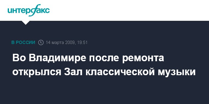 Владимир. 14 марта. ИНТЕРФАКС-ЦЕНТР - После реконструкции открылся Зал классической музыки во Владимире.