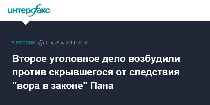Второе уголовное дело возбудили против скрывшегося от следствия "вора в законе" Пана