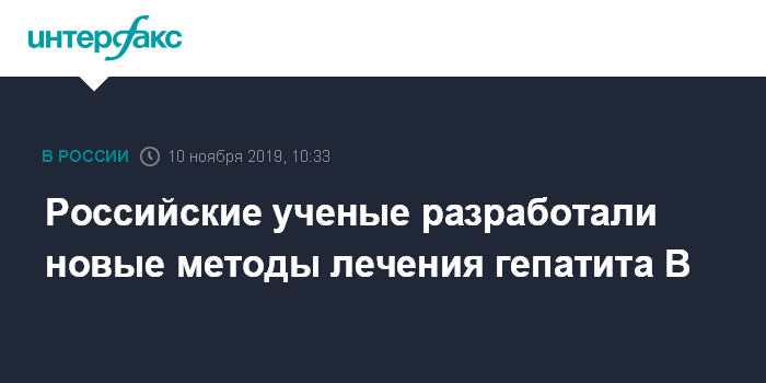 Москва. 10 ноября. INTERFAX.RU - Российские ученые выработали новые подходы к лечению хронического гепатита B, сообщает в воскресенье пресс-служба Роспотребназдора.