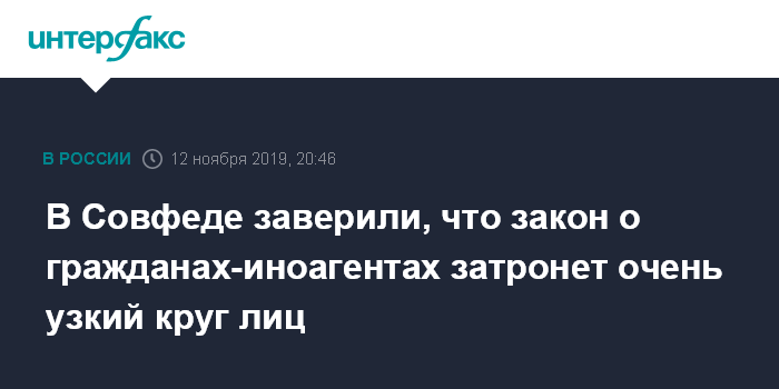 На уточняющий вопрос, значит ли это, что статус физлица-иноагента могут получить журналисты, работающие в подобных СМИ, сенатор ответил, что теоретически такое возможно, "но в практическом плане, я думаю, что о всем коллективе (в СМИ - ИФ) речи не идет".