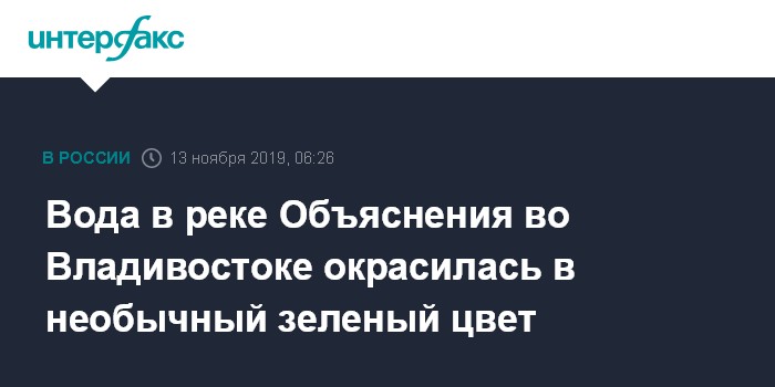 Москва. 13 ноября. INTERFAX.RU - Прокуратура выясняет причины, по которым вода в реке Объяснения во Владивостоке окрасилась в ядовито-зеленый цвет.