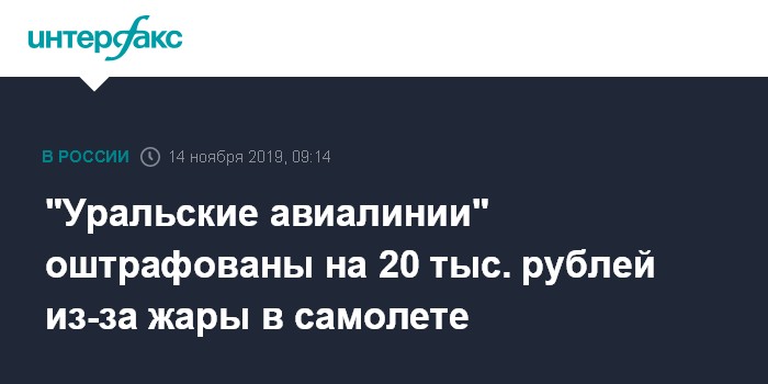 "Уральские авиалинии" оштрафованы на 20 тыс. рублей из-за жары в самолете