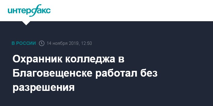 Москва. 14 ноября. INTERFAX.RU - Охранник, работавший в колледже в Благовещенске, где в четверг учащийся устроил стрельбу и покончил с собой, не имел соответствующего разрешения на охранную деятельность, сообщил официальный представитель Росгвардии Валерий Грибакин.