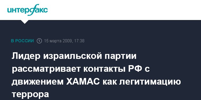 Лидер израильской партии рассматривает контакты РФ с движением ХАМАС как легитимацию террора