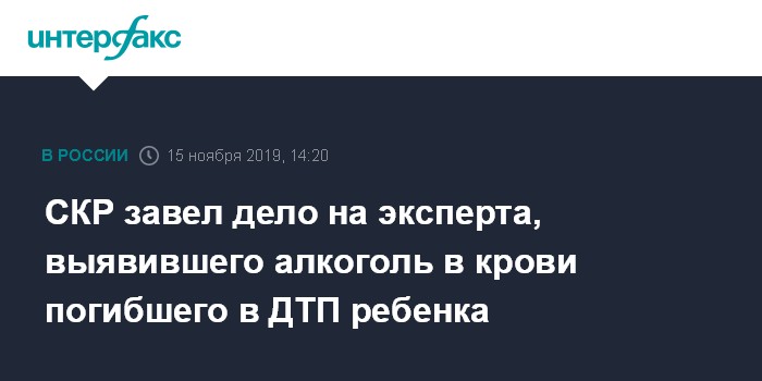 СКР завел дело на эксперта, выявившего алкоголь в крови погибшего в ДТП ребенка