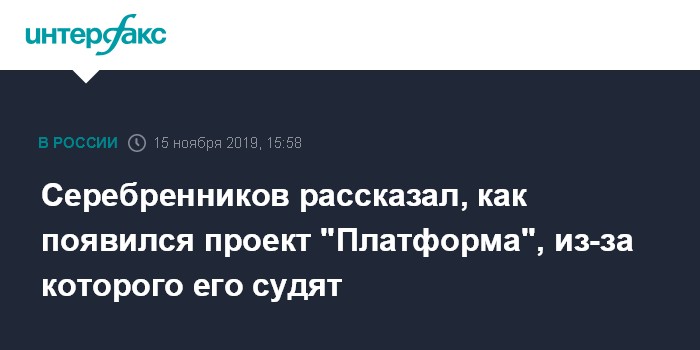 "Это все проходило в 2010-2011 году, когда пришел (Дмитрий - ИФ) Медведев (стал президентом - ИФ). (...) Меня вдруг стали приглашать на различные совещания при президенте. Олег Табаков, учитель мудрый мой, спросил: "Ты идешь на заседание с президентом, что ты скажешь?" Я сказал, что у меня есть идея "Платформы". Он говорит: "А ты бумажку какую-нибудь написал?" Я спросил: "А надо?" Он сказал: "Конечно, если идешь на встречу с начальством, нужна бумажка". Так я написал программу "Платформы", - рассказал Серебренников на допросе в Мещанском суде Москвы в пятницу.