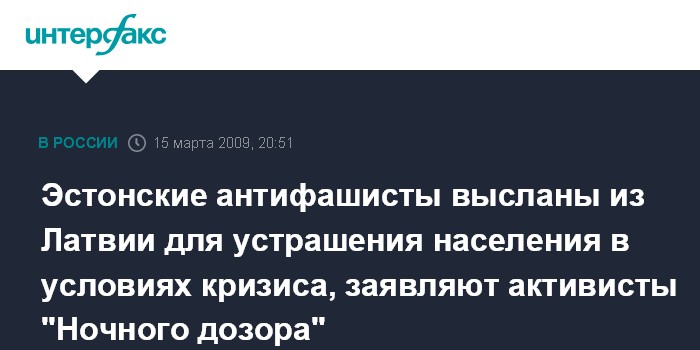 Эстонские антифашисты высланы из Латвии для устрашения населения в условиях кризиса, заявляют активисты "Ночного дозора"