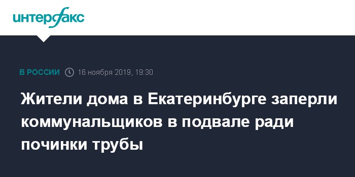 Москва. 16 ноября. INTERFAX.RU - Жители дома на улице Бажова в Екатеринбурге заперли в подвале аварийную бригаду, чтобы она решила проблему с прорывом трубы, сообщает в субботу Ura.ru.