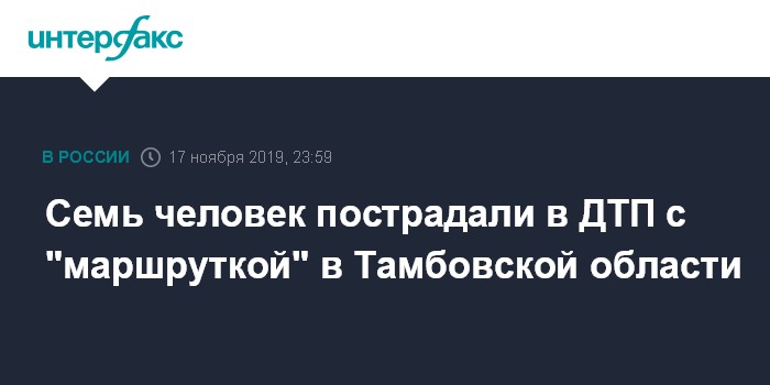 Москва. 17 ноября. INTERFAX.RU - По уточненным данным, семь человек пострадали в дорожно-транспортном происшествии (ДТП) с участием маршрутного микроавтобуса в Знаменском районе Тамбовской области, сообщила в воскресенье пресс-служба Главного управления МЧС по региону.