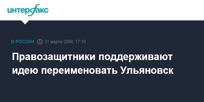 Москва. 31 марта. INTERFAX.RU - Общество "Мемориал" - одна из ведущих российских правозащитных организаций - поддержало инициативу возвращения Ульяновску его исторического имени - Симбирск.
