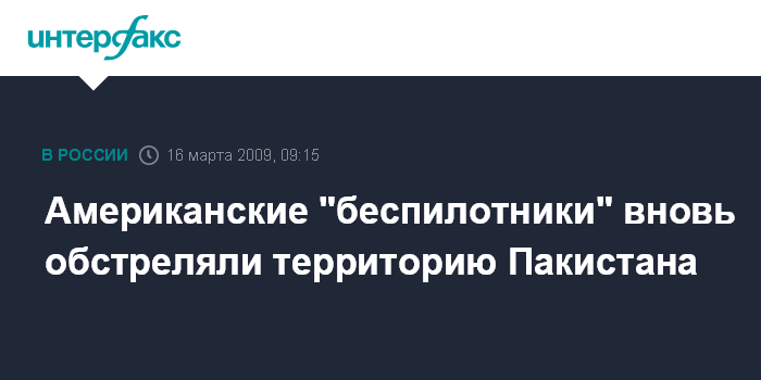 Москва. 16 марта. INTERFAX.RU - Минимум четверо человек погибли в понедельник на севере Пакистана в результате ракетного обстрела, проведенного, предположительно, американскими беспилотными самолетами.
