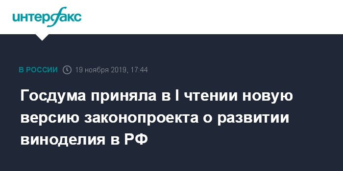 В октябре же группа депутатов во главе с руководителем думской фракции "Единая Россия" Сергеем Неверовым внесла новую версию законопроекта о развитии в РФ виноградарства и виноделия, который и был принят в первом чтении во вторник.