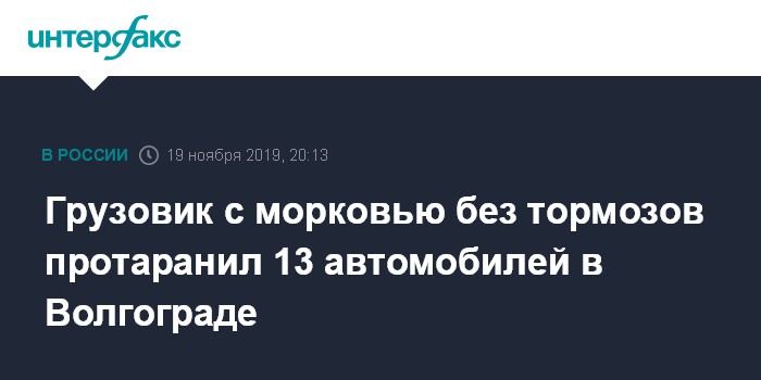 Грузовик с морковью без тормозов протаранил 13 автомобилей в Волгограде