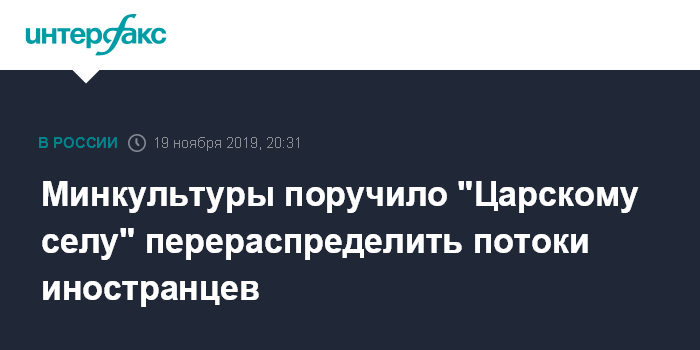 Минкультуры поручило "Царскому селу" перераспределить потоки иностранцев