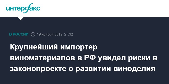 Крупнейший импортер виноматериалов в РФ увидел риски в законопроекте о развитии виноделия