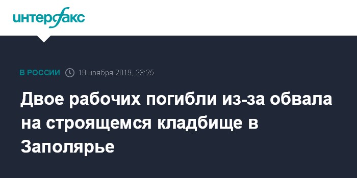 Москва. 19 ноября. INTERFAX.RU - На строящемся кладбище в Мончегорске (Мурманская область) погибли двое рабочих, по данному факту начата проверка, сообщает региональное управление СКР.