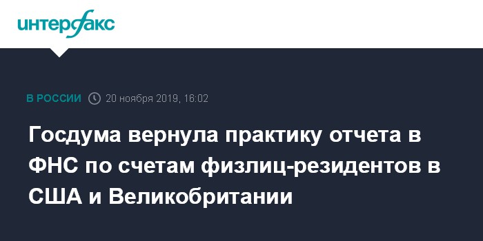 Госдума вернула практику отчета в ФНС по счетам физлиц-резидентов в США и Великобритании