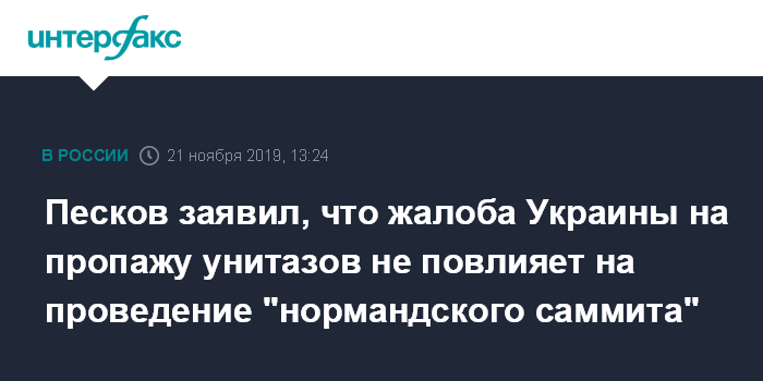 Песков заявил, что жалоба Украины на пропажу унитазов не повлияет на проведение "нормандского саммита"