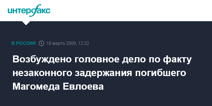 Москва. 16 марта. INTERFAX.RU - Возбуждено уголовное дело по факту незаконного задержания 31 августа прошлого года в аэропорту Магаса владельца сайта "Ингушетия.ру" Магомеда Евлоева.