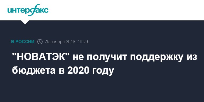 "НОВАТЭК" не получит поддержку из бюджета в 2020 году