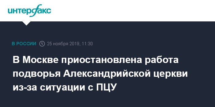 Москва. 25 ноября. INTERFAX.RU - Патриарх Московский и всея Руси Кирилл приостановил работу Александрийского подворья в российской столице.