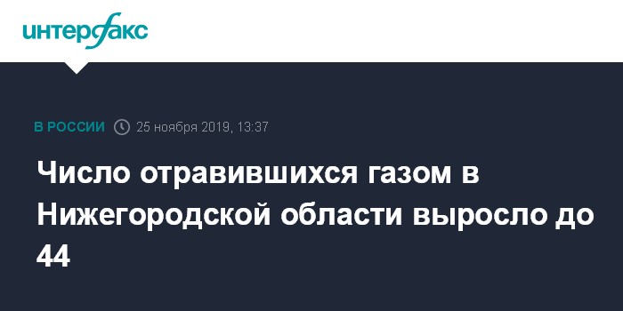 Москва. 25 ноября. INTERFAX.RU - Число пострадавших от отравления газом в Нижегородской области увеличилось до 44 человек, сообщает пресс-служба губернатора Нижегородской области.