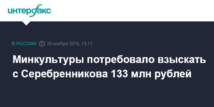 Минкультуры потребовало взыскать с Серебренникова 133 млн рублей
