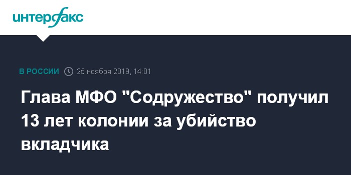 Глава МФО "Содружество" получил 13 лет колонии за убийство вкладчика