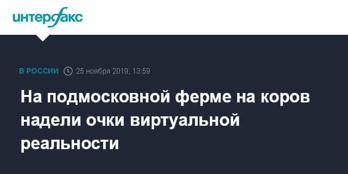 Москва. 25 ноября. INTERFAX.RU - На ферме в Московской области протестировали прототип очков виртуальной реальности (VR) для улучшения условий содержания коров, сообщает пресс-служба министерства сельского хозяйства и продовольствия Московской области.