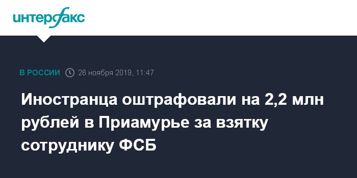 Иностранца оштрафовали на 2,2 млн рублей в Приамурье за взятку сотруднику ФСБ