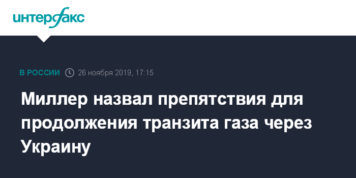 Миллер 18 ноября предложил "Нафтогазу Украины" продлить действующий контракт о транзите или заключить новый на один год. Необходимыми условиями для этого он назвал отказ обеих сторон от взаимных претензий в международном арбитраже и прекращение судебных разбирательств, отмену решения Антимонопольного комитета Украины о наложении на "Газпром" штрафа за "нарушение экономической конкуренции" и отзыв ходатайства "Нафтогаза Украины" об инициировании Еврокомиссией расследования против "Газпрома".