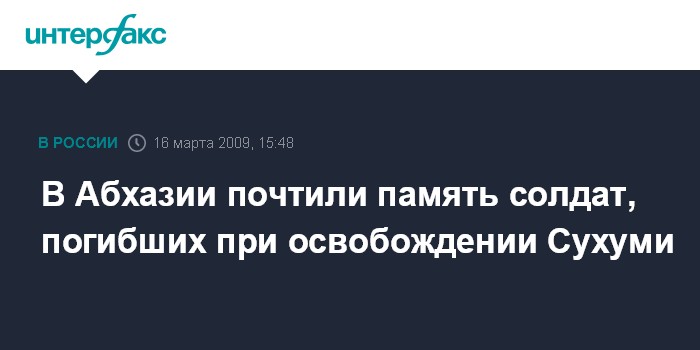 Сухуми. 16 марта. INTERFAX.RU - В Абхазии 16 марта отмечают день памяти воинов, погибших в 1993 году во время операции по освобождению Сухуми от грузинских правительственных войск.
