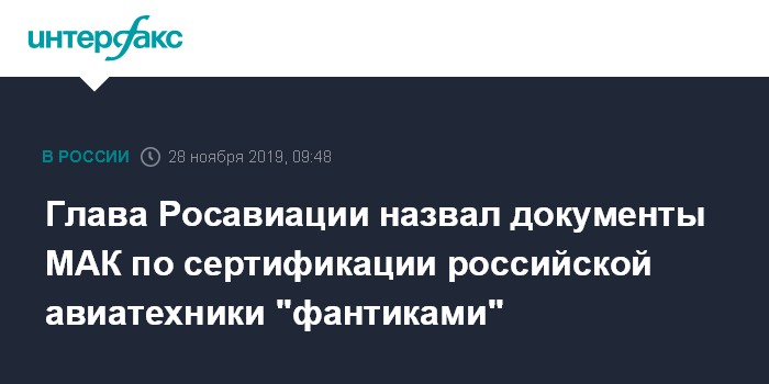 Глава Росавиации назвал документы МАК по сертификации российской авиатехники "фантиками"