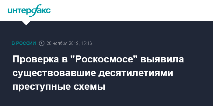 Проверка в "Роскосмосе" выявила существовавшие десятилетиями преступные схемы