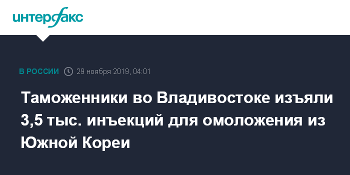 Таможенники во Владивостоке изъяли 3,5 тыс. инъекций для омоложения из Южной Кореи