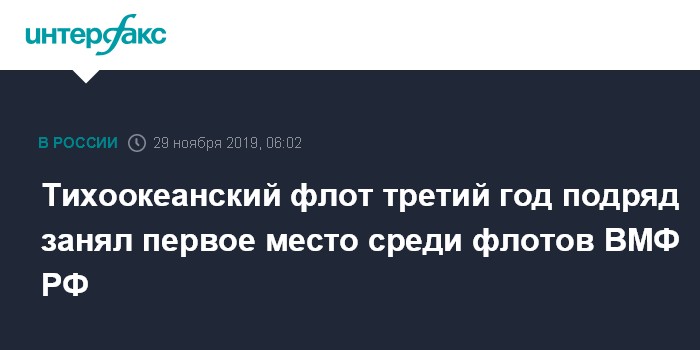 Москва. 29 ноября. INTERFAX.RU - Тихоокеанский флот (ТОФ) по итогам 2019 года получил половину призов главнокомандующего Военно-Морским флотом (ВМФ) России по различным видам боевой подготовки, и в третий раз подряд стал первым среди флотов ВМФ РФ, сообщает пресс-служба ТОФ.