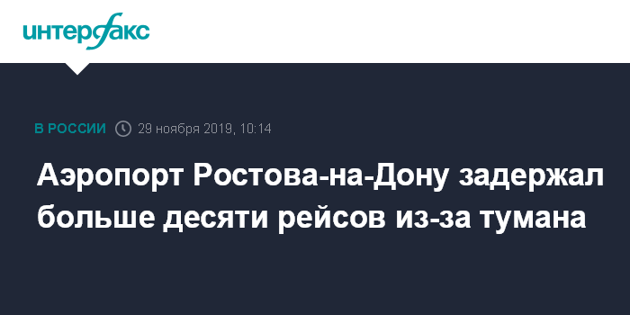 Москва. 29 ноября. INTERFAX.RU - Из-за сильного тумана международный аэропорт "Платов" Ростова-на-Дону задержал 11 рейсов, сообщила пресс-служба аэропорта. Видимость составляет около ста метров.