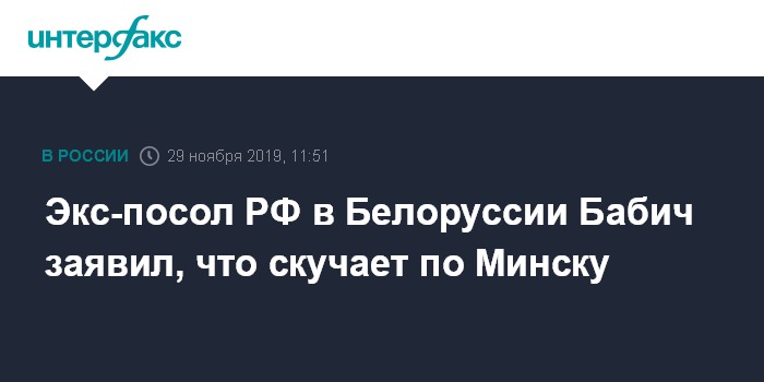 Экс-посол РФ в Белоруссии Бабич заявил, что скучает по Минску