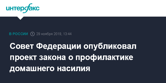 Москва. 29 ноября. INTERFAX.RU - Законопроект о профилактике домашнего насилия опубликован на сайте Совета Федерации, в нем предлагается выносить защитные предписания, ограничивающие возможность общения обидчика с жертвой.