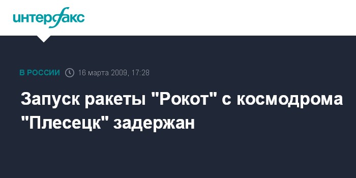 Москва. 16 марта. INTERFAX.RU - Запуск конверсионной ракеты-носителя "Рокот" с европейским научным космическим аппаратом отложен за семь секунд до старта с космодрома "Плесецк", заявили "Интерфаксу" в Европейском космическом агентстве, заявил в офисе ЕКА в Москве руководитель представительства ЕКА в России.