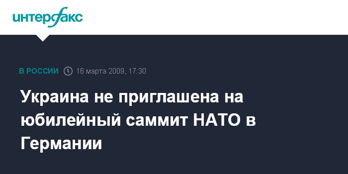 Киев. 16 марта. INTERFAX.RU - Украина не будет принимать участие в юбилейном саммите НАТО, запланированном на начало апреля в Германии, сообщили агентству "Интерфакс-Украина" в украинском МИД.