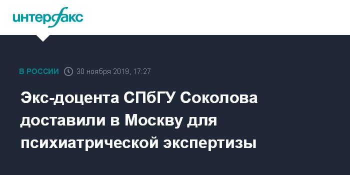 Экс-доцента СПбГУ Соколова доставили в Москву для психиатрической экспертизы
