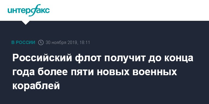Москва. 30 ноября. INTERFAX.RU - Несколько кораблей и судов получат российские военные моряки до конца года, в том числе подлодку, фрегат и корвет, сообщил в субботу главнокомандующий ВМФ РФ адмирал Николай Евменов.