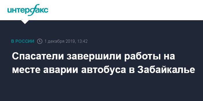 Москва. 1 декабря. INTERFAX.RU - Аварийно-спасательные работы на месте аварии с автобусом в Забайкальском крае завершены, сообщили "Интерфаксу" в МЧС России в воскресенье.