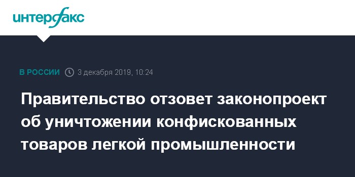 Правительство отзовет законопроект об уничтожении конфискованных товаров легкой промышленности