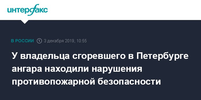 У владельца сгоревшего в Петербурге ангара находили нарушения противопожарной безопасности