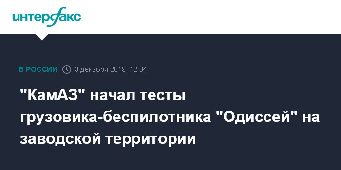 Москва. 3 декабря. INTERFAX.RU - "КамАЗ" начал тестовые заезды беспилотника проекта "Одиссей" на основе грузовика "КамАЗ"-4308 на заводской территории.