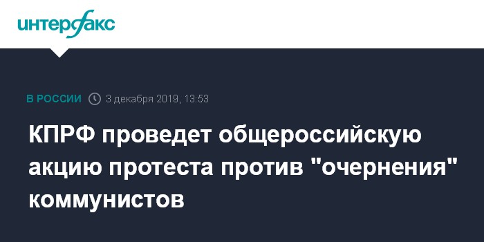 Москва. 3 декабря. INTERFAX.RU - КПРФ проведёт 14 декабря всероссийскую акцию протеста против "очернения" ее представителей, которое, по мнению коммунистов, имеет место на гостелевидении, заявил лидер партии Геннадий Зюганов.