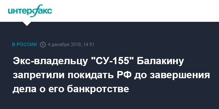 Экс-владельцу "СУ-155" Балакину запретили покидать РФ до завершения дела о его банкротстве