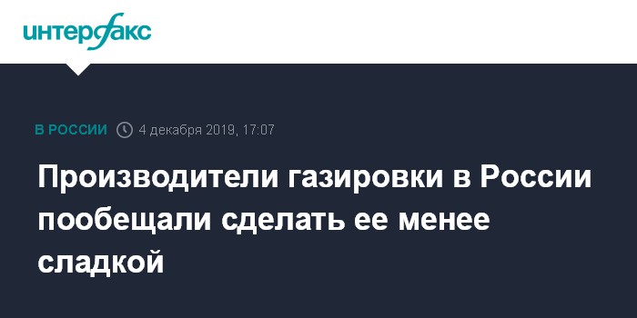 Москва. 4 декабря. INTERFAX.RU - Представители Союза производителей безалкогольных напитков и минеральных вод (СПБН), куда входят PepsiCo и Coca-Cola, взяли на себя добровольные обязательства снизить количество сахара в своей продукции.